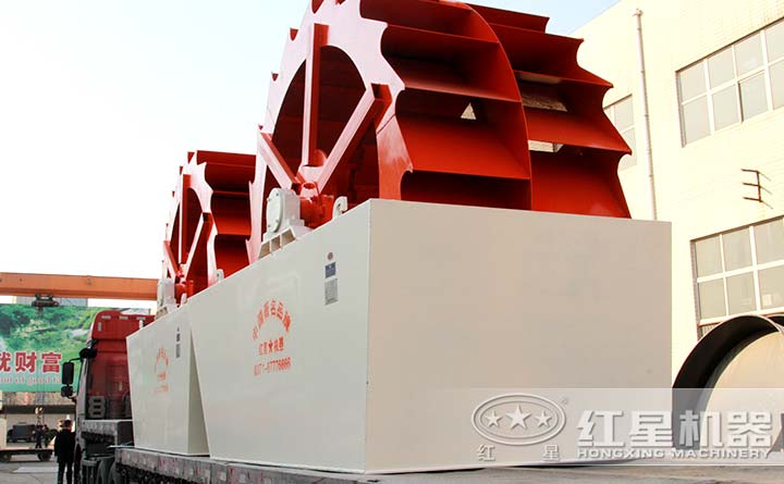 天博轮斗式河卵石洗砂机发货现场