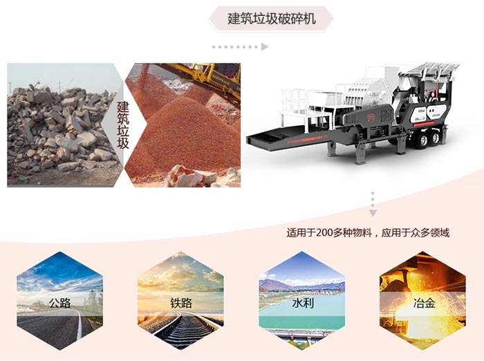 该设备采用多级组合的作业方式,根据不同用户的生产情况配置的不同的类型,而且这款设备不仅可以破碎建筑垃圾,还可以加工河卵石、花岗岩、石灰石等200多种石料。