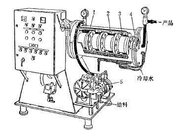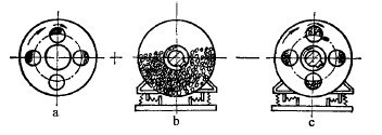 图3示出了回转磨机的结构及工作原理。当转动轴6旋转时,筒体1除在水平方面旋转外还围绕2在垂直方向旋转,这样促使研磨介质作非常复杂的运动。筒体在垂直方向和水平方向适宜的速比为1:1-1:1.5。