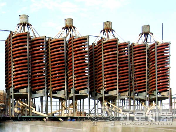 重介质旋流器适于处理20-30mm的物料。弥补了一般重介质选矿设备不能处理细粒级的缺欠。由于它的处理效率高,故在国内外渐趋广泛应用。国内除用于钨、锡、锰、铅锌矿石的处理外,还用于处理弱磁性贫铁矿石。