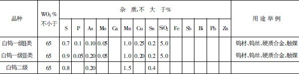 钨冶炼对钨精矿质量因不同的冶炼方法和不同的目的产品有着不同的要求。如供火法冶炼制钨铁和合金钢的钨精矿,对硫、磷和重金属元素的含量要求很严,因为这些有害元素在冶炼过程不能脱除,以致使炼成的钨钢产生热脆或冷脆而降低机械性能;而对钼的含量则可不限,因钼是钢的有益元素;在黑钨精矿中所含的白钨也毋须严格分开。但是,当用黑钨精矿作水冶的原料时,先加工成仲钨酸铵、钨氧等中间产品,再制成硬质合金和钨材制品。为提高钨精矿的分解率,则要求黑钨、白钨分开,对黑钨精矿要求控制钙(白钨)的含量;对白钨精矿要求控制锰(黑钨矿)的含量。再如,当制作钨丝、钨材时,对钼就需要提出严格要求,因微量的钼会影响电灯或电子管灯丝的寿命及效能。