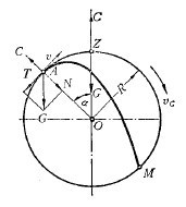 如下图2,在球荷中任意取一钢球A1,它处于球的重量G的作用下,并且有离心力C。G的切向分力使质点A1沿切线方向运动;G的法向分力