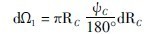 任取一层球,它的球层半径为Rc,脱离角为ac,落下角为