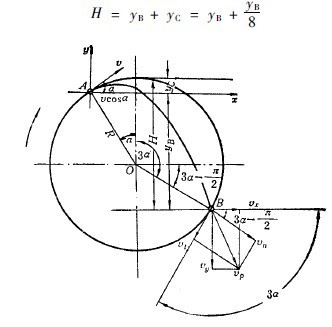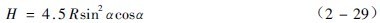 钢球落下冲击矿石的能量,来自它落到终点时的动能。此动能的大小,决定于钢球的落下高度。而磨机的转速又决定着钢球的落下高度,所以决定磨机转速的方法直接和分析钢球落下时的动能有关。由图3-2-11可知,钢球落下高度H值为