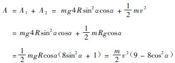 不难证明,此动能即磨机将球由落回点B提升到脱离点A所作的功(A1),和自脱离点用速度v将球抛出所作的功(A2)。因为