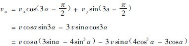 将速度vp的水平分速度vx,和垂直分速vy投到径向分速度vn的方向上,则