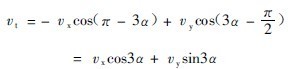 将此式展开及化简后,整理成 将vx和vy投到切线分速度v1的方向上,则