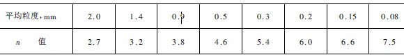 表3-4-7 n值与粒度的关系(形状为多角形)