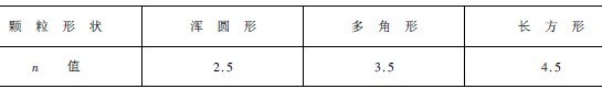表3-4-8 n值与形状的关系(颗粒粒度1mm)