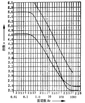 按摩尔朗德(Moreland)等的研究,n值还与雷诺数有关。雷诺数按计,v0为自由沉降末速度。